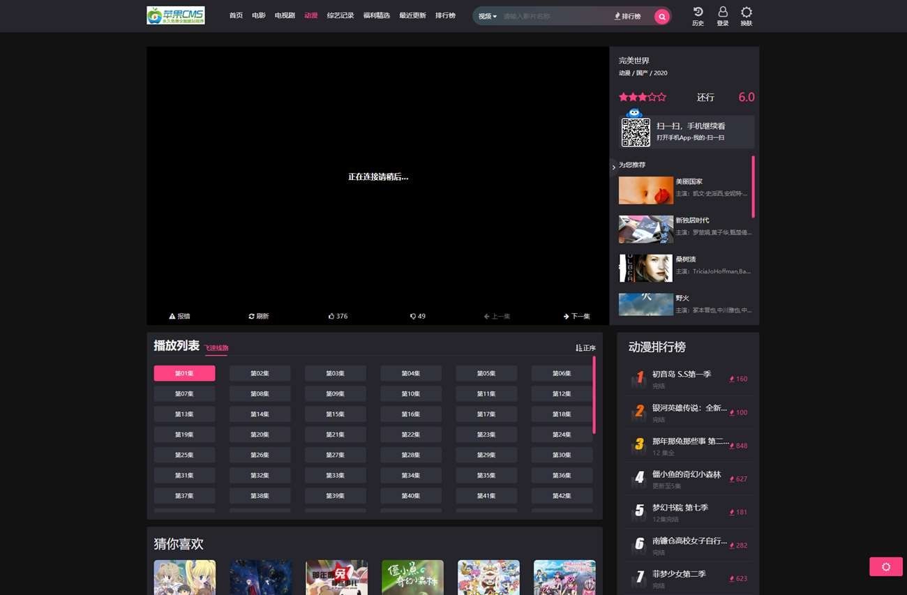 2024-02-02 蜻蜓導航 已瀏覽1281次全新仿短視影視模版源碼 PC+H5自適應 黑白雙皮膚 ,蘋果cms系統